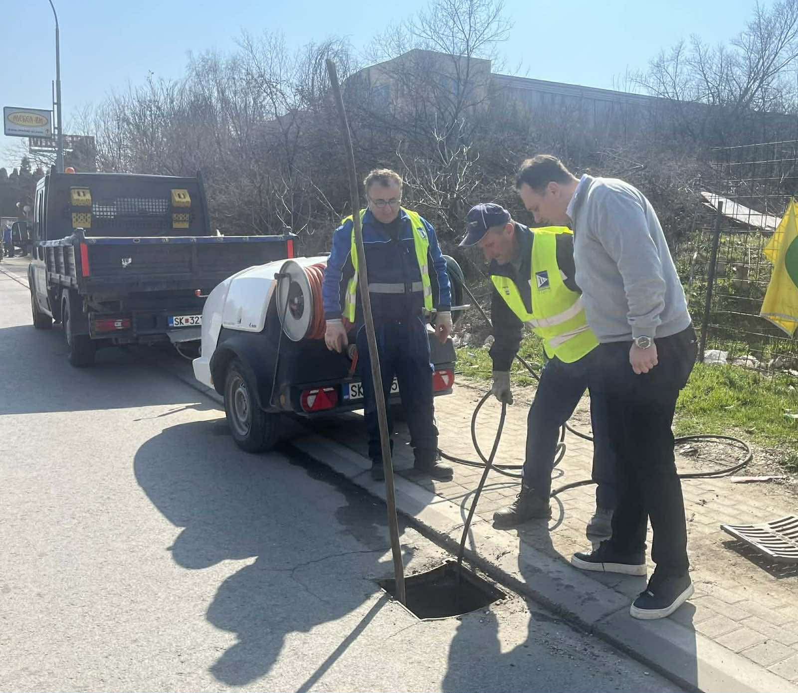 Во рамки на акцијата, екипите на претпријатието извршија контрола на шахтите и сливниците, перење на канализационата линија со цистерна-вакуум, како и прочистување со цистерна под висок притисок.