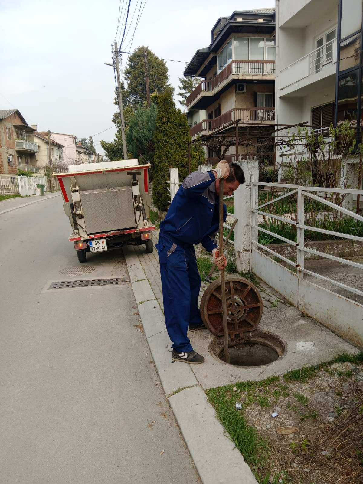 Екипите на сектор Канализација во текот на денешниот ден спроведоа активности за расчистување на шахти, отпушување на атмосферски канализации и чистење на сливници и фекални шахти.